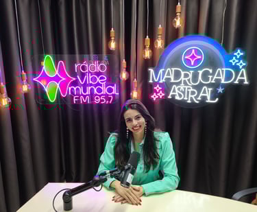 Como comunicadora na Rádio Vibe Mundial 95.7 FM e na Astral TV, uma das apresentadoras do programa Madrugada Astral, levo a sabedoria dos astros para milhares de pessoas, abordando sempre assuntos que engrandecem a alma. Minha formação em Astrologia, Tarot e Baralho Cigano me permite desvendar os bloqueios que impedem seu sucesso pessoal, profissional e bem-estar.