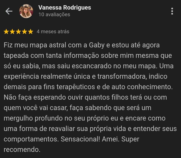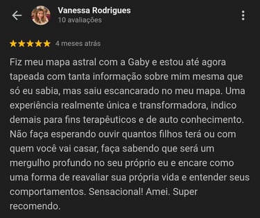 Desvende seu passado, compreenda seu presente e construa um futuro extraordinário! Contrate sua leitura de Mapa Astral ao vivo e online com Gabi Estrela. Você vai encontrar as respostas para melhorar sua vida amorosa, financeira e espiritual de uma vez por todas!