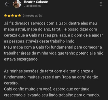 Sou a Gabi Estrela, e minha missão é guiar você em uma jornada profunda de autoconhecimento e transformação. Minha própria busca por propósito me levou da vida tradicional à espiritualidade, onde a astrologia e os oráculos se tornaram minhas bússolas. Desde então, dedico-me a ajudar pessoas como você a se reconectar com a própria essência e descobrir o poder que reside no autoconhecimento.